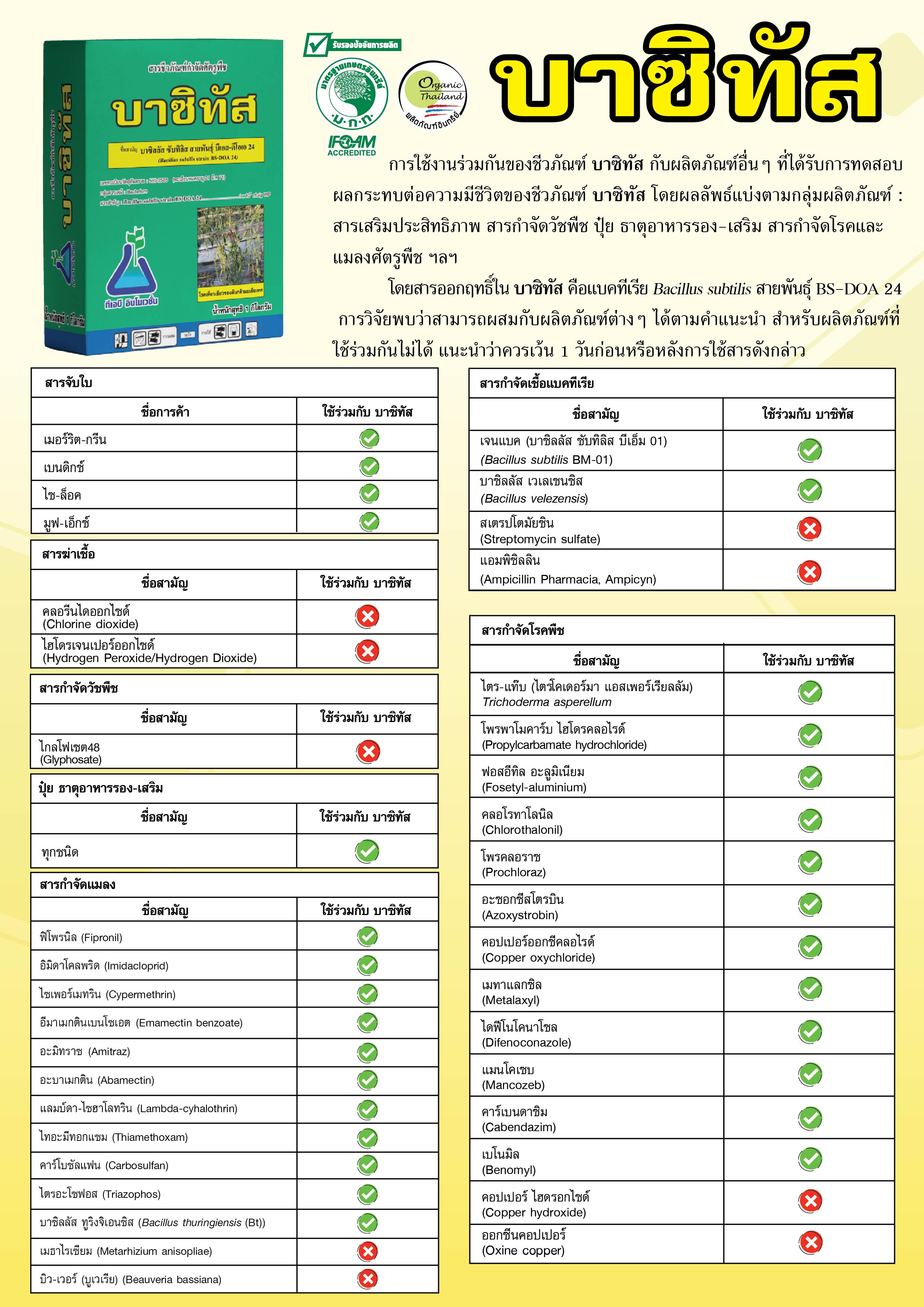 การใช้ชีวภัณฑ์ บาซิทัส ผสมร่วมกับผลิตภัณฑ์อื่นๆ