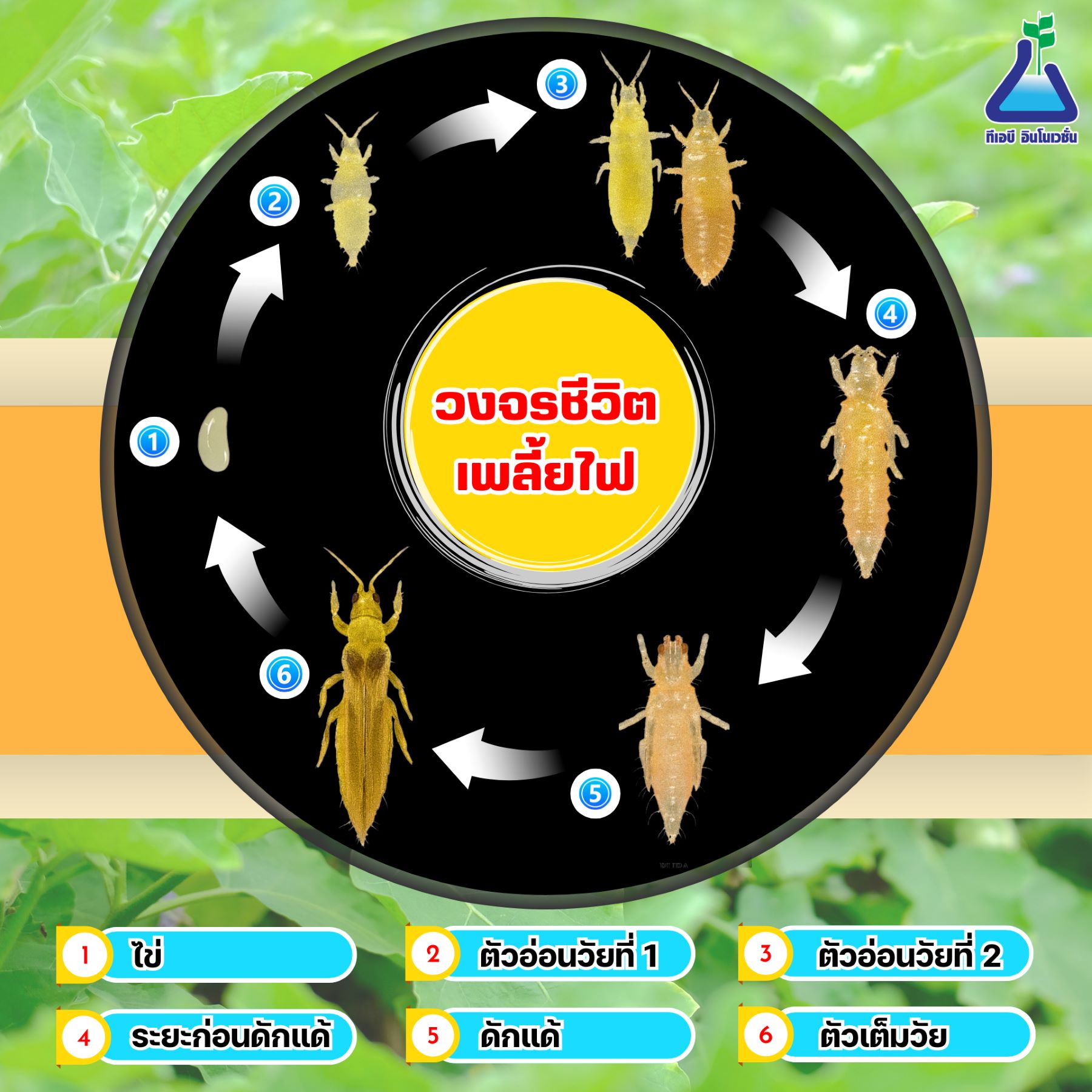 วงจรชีวิตเพลี้ยไฟ 6 ระยะ