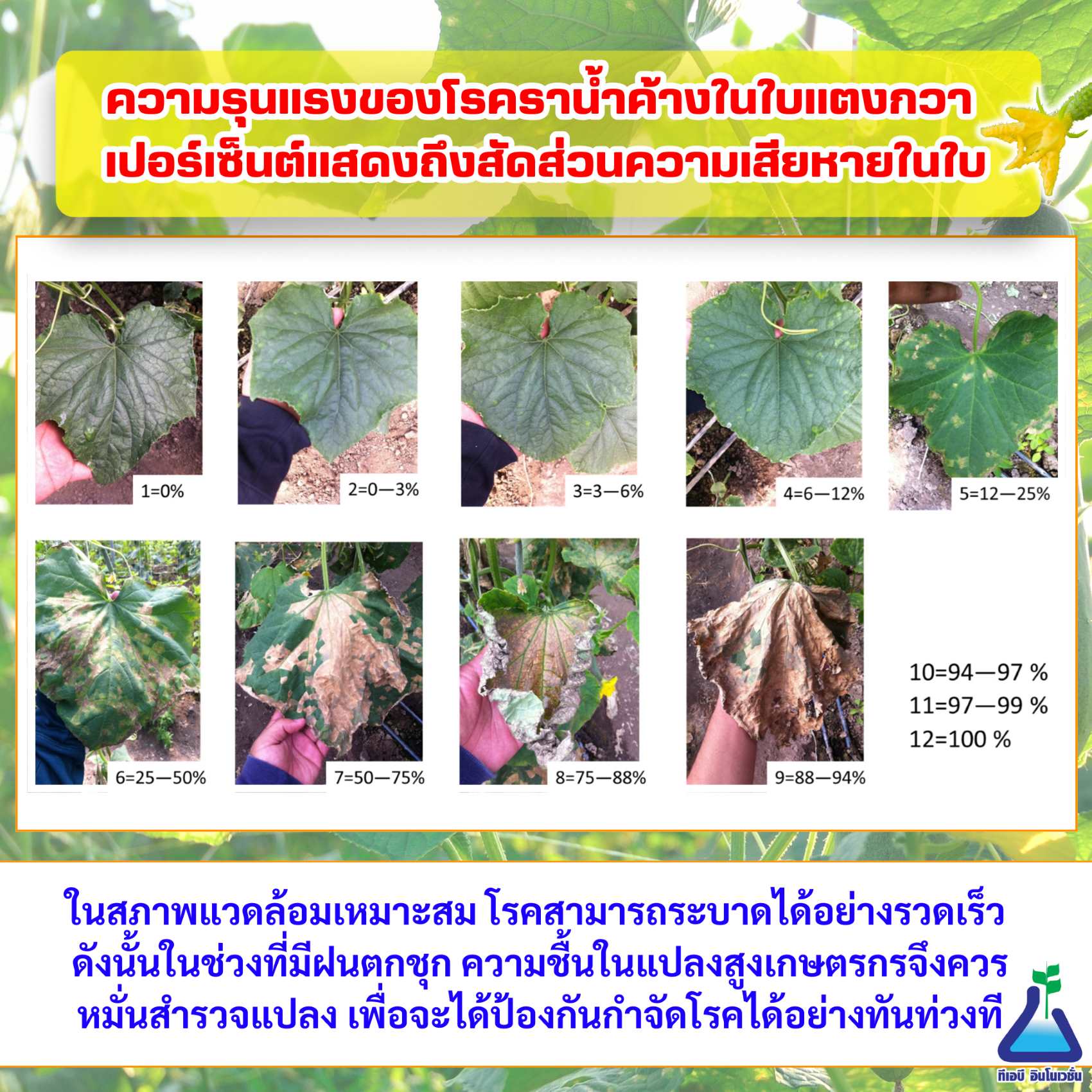 2. ไม่ควรให้แปลงมีความชื้นมากเกินไป หลีกเลี่ยงการลดน้ำบนใบพืช