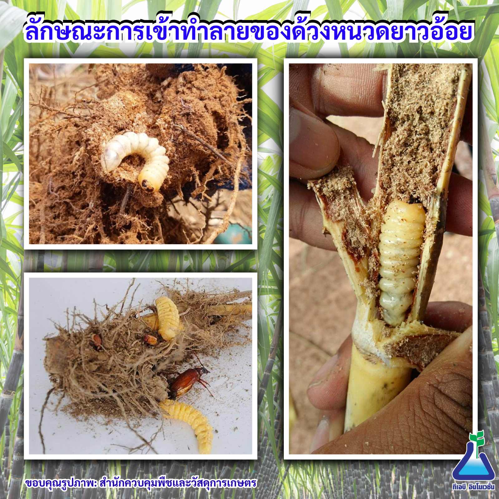 1. ช่วงการไถก่อนการปลูกอ้อย เกษตรกรควรเก็บตัวหนอนออกจากแปลงเดิม