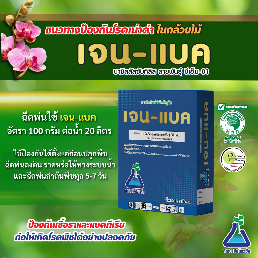 เจน-แบค สามารถป้องกันเชื้อราและแบคทีเรียก่อให้เกิดโรคพืชได้อย่างปลอดภัย โดยมีอัตราใช้ ผสมในอัตราส่วน 100 กรัม/น้ำ 20 ลิตร สามารถใช้ป้องกันได้ตั้งแต่ก่อนปลูกพืช ฉีดพ่นลงดิน ราดหรือให้ทางระบบน้ำ และฉีดพ่นลำต้นพืชทุก 5-7 วัน ควรฉีดพ่นช่วงเวลาเย็น เมื่ออากาศไม่ร้อน และควรฉีดพ่นให้ทั่วต้นพืช